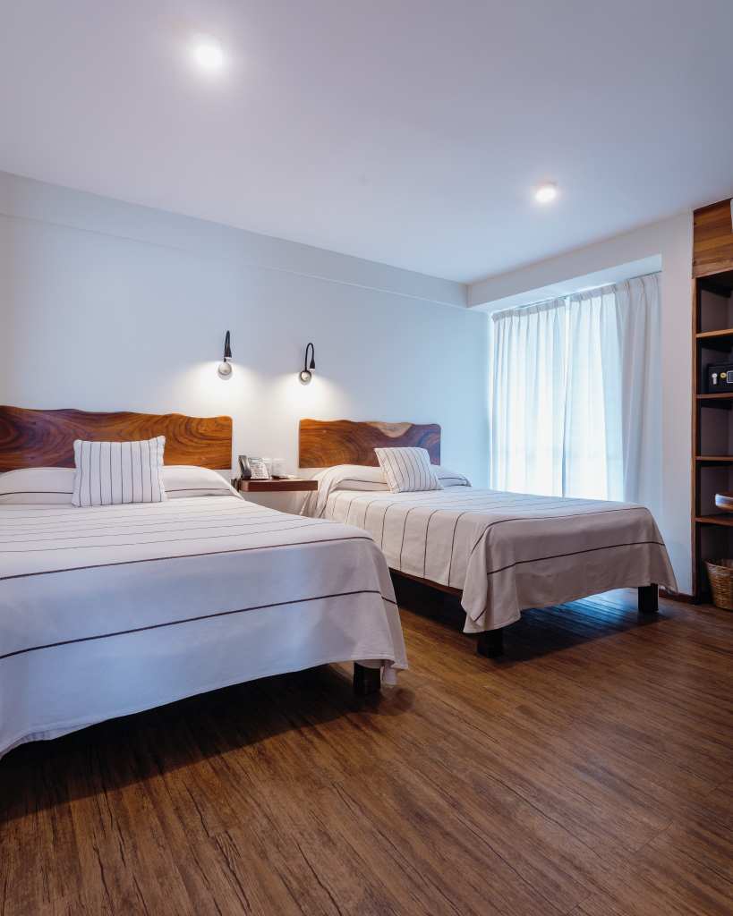 Habitación estándar con una cálida decoración regional. Con espacios básicos para una estancia agradable y relajante.
