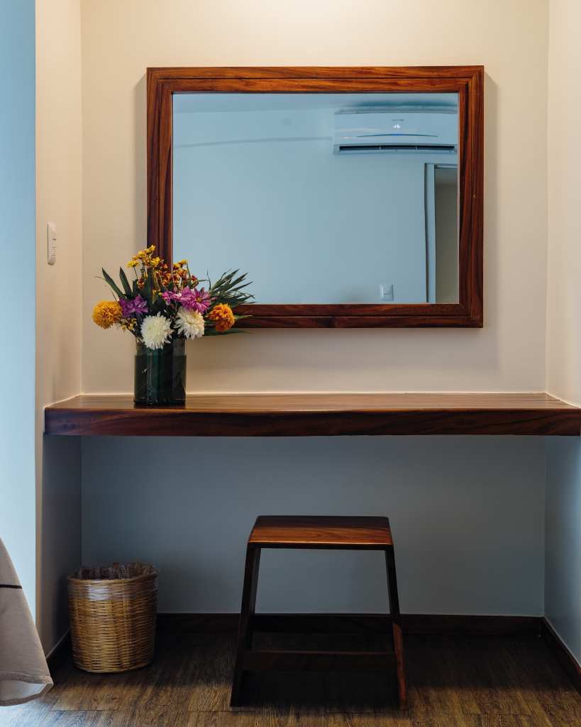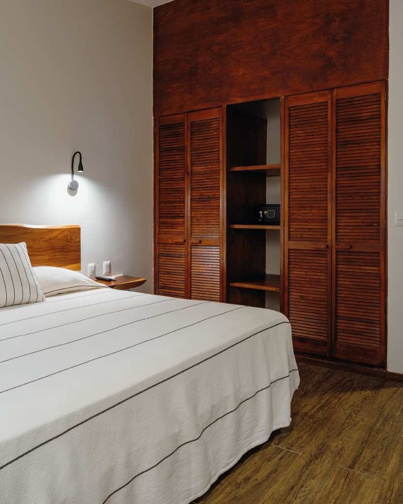 Habitación con una decoración fresca, muebles de parota y espacios amplios para una estancia agradable y relajada.